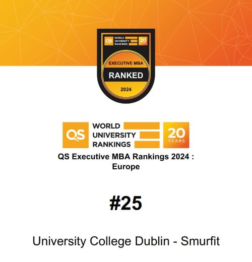 UCD Smurfit School’s Executive MBA Ranks 1st in Ireland and 25th in Europe in QS Global Rankings